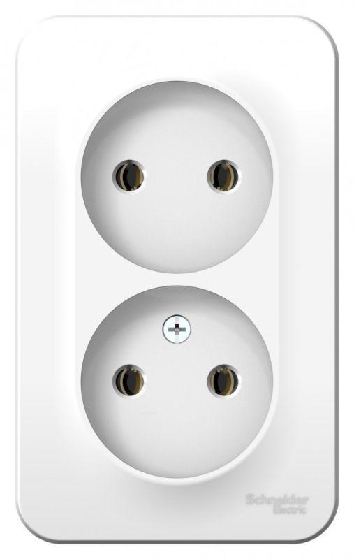 Розетка Systeme Electric (ранее Schneider Electric) BLANCA (белый, открытой установки) двухместная, без шторок и заземления, с монтажной пластиной предназначена для сетей до 250В, на ток до 16А. Двухместная розетка позволяет подключить два устройства в одном месте. Она изготовлена из ABS-пластика, проста в установке и удобна в применении.