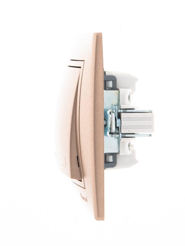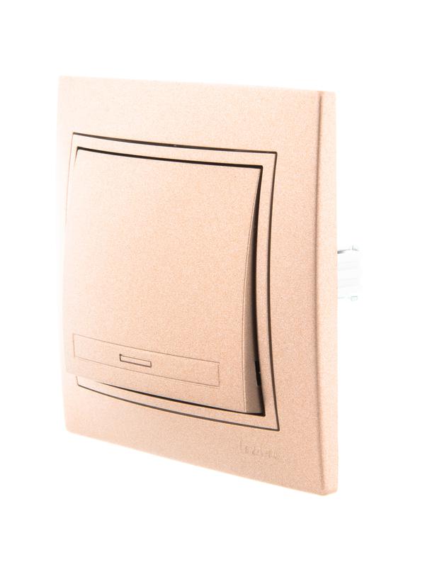 Выключатель 1-кл. СП Mira 10А IP20 со вставкой свет. корич. перламутр. LEZARD 701-3131-100
