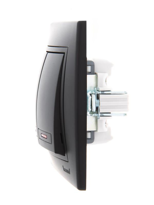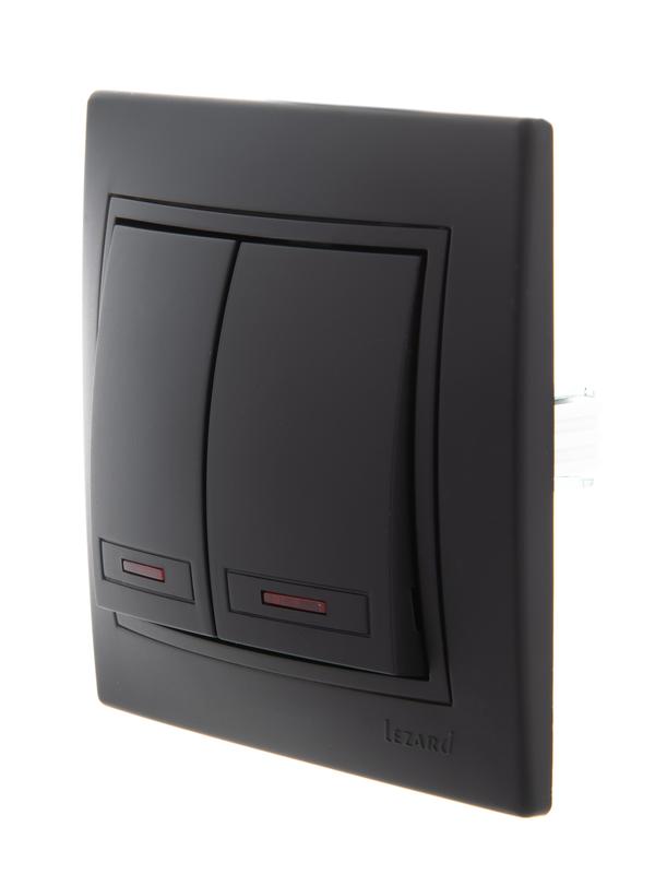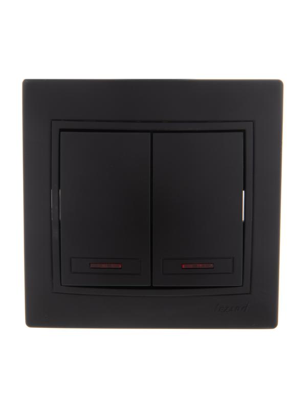 Выключатель 2-кл. 1п СП Mira 10А IP20 с подсветкой со вставкой черн. бархат LEZARD 701-4242-112