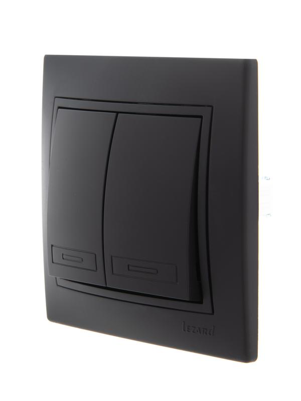 Выключатель 2-кл. 1п СП Mira 10А IP20 со вставкой черн. бархат LEZARD 701-4242-101 -