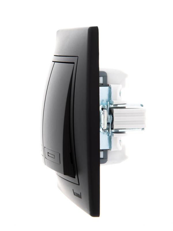 Выключатель 2-кл. 1п СП Mira 10А IP20 со вставкой черн. бархат LEZARD 701-4242-101