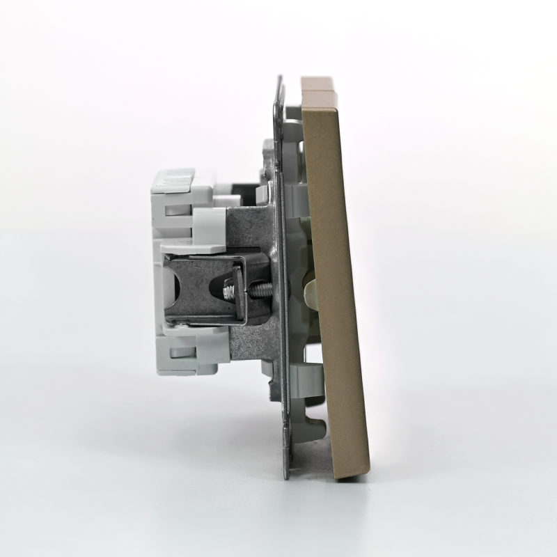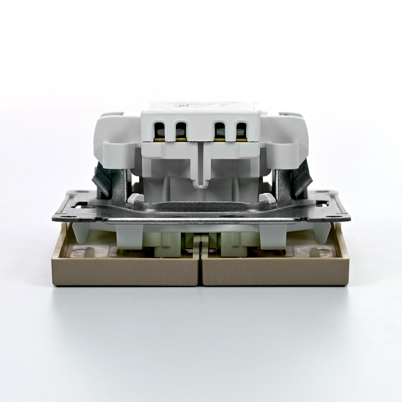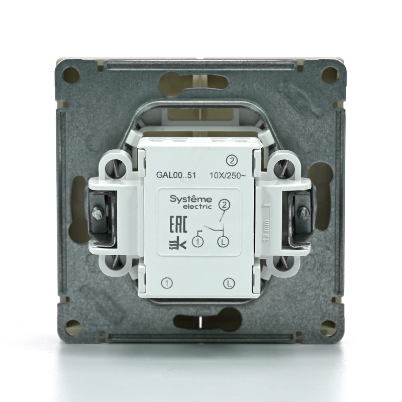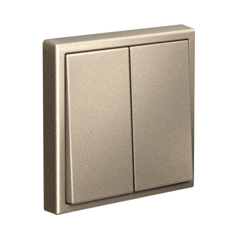 Механизм выключателя 2-клавишного Systeme Electric серии ArtGallery в цвете шампань подходит для сетей 250 В, на ток 10 А.