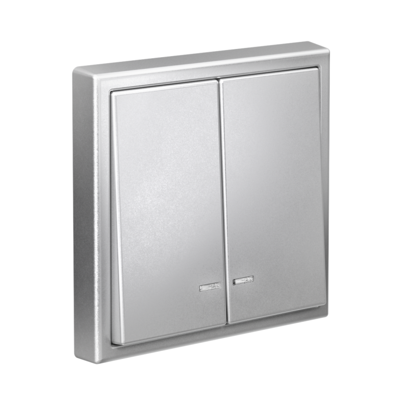Механизм Systeme Electric серии ArtGallery в цвете алюминий выключателя 2-клавишного c подсветкой подходит для сетей 250 В, на ток 10 А.