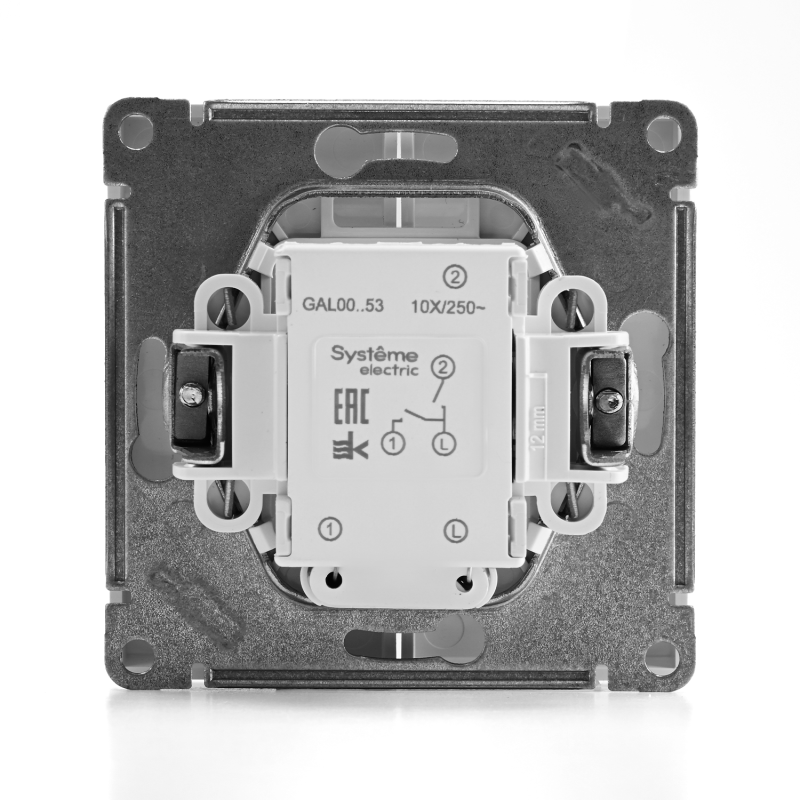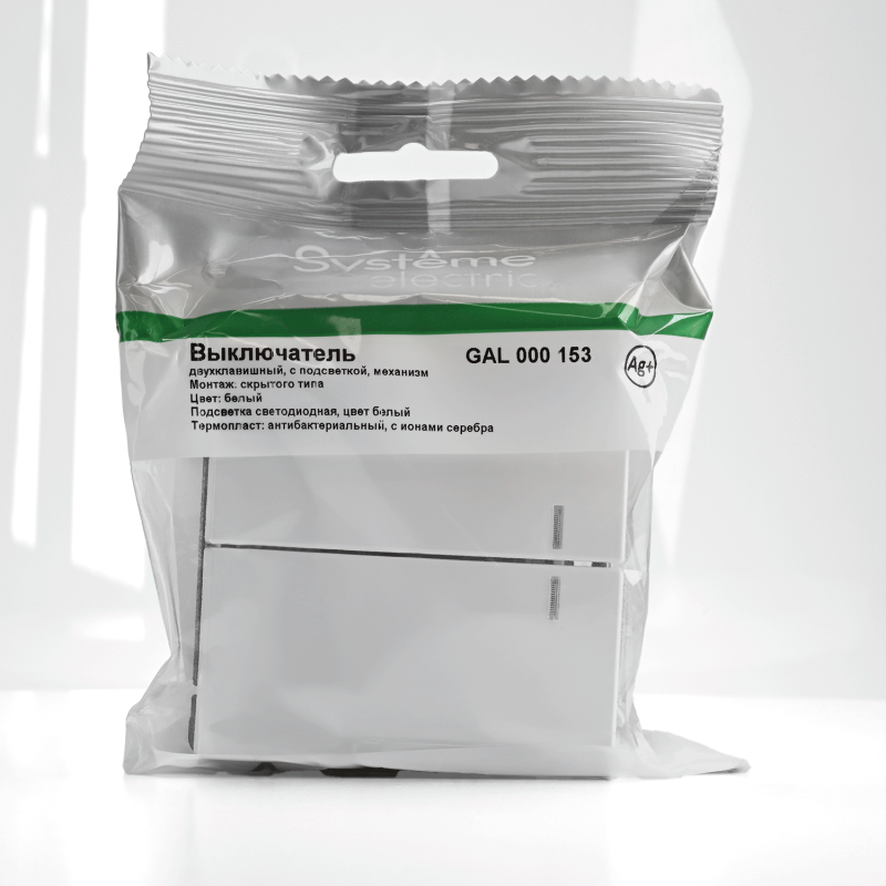Механизм Systeme Electric серии ArtGallery в цвете белый выключателя 2-клавишного c подсветкой подходит для сетей 250 В, на ток 10 А.