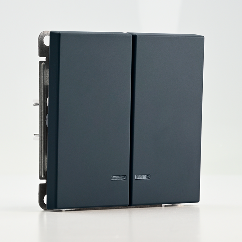 Механизм Systeme Electric серии ArtGallery в цвете грифель выключателя 2-клавишного c подсветкой подходит для сетей 250 В, на ток 10 А.