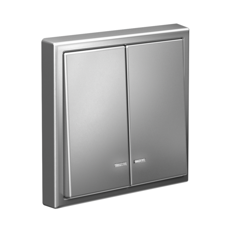 Механизм Systeme Electric серии ArtGallery в цвете сталь выключателя 2-клавишного c подсветкой подходит для сетей 250 В, на ток 10 А.