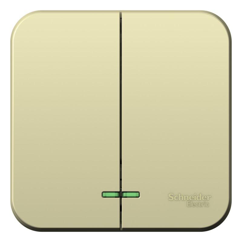 Выключатель двухклавишный Systeme Electric (ранее Schneider Electric) BLANCA (открытой установки, цвет бежевый) с изолирующей пластиковой пластиной и подсветкой предназначен для сетей до 250 В, на ток до 10 А. Благодаря светодиодной подсветке зеленого цвета изделие легко найти в темноте. С его помощью можно управлять двумя источниками света с одной точки. Увеличенная площадь контактной поверхности гарантирует надежность и качество соединения, исключая потери. Корпус изделия выполнен из ABS-пластика.