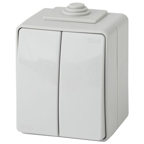 Выключатель влагозащищённый 2-клавишный серии Эра Эксперт накладной IP65 цвет серый 11-1604-03. Номинальные характеристики 10А 250В. Выполнен из качественного поликарбоната, оснащён уникальными винтовыми клеммами ЭКСПЕРТ для максимально качественного зажима кабеля в механизме