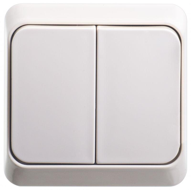 Выключатель Systeme Electric (ранее Schneider Electric) ЭТЮД (кремовый, открытой установки) двухклавишный предназначен для применения в сетях до 250В, на ток до 10А. Две клавиши позволяют управлять двумя источниками света с одной точки. Он прост в установке и удобен в применении. Сделано в России.