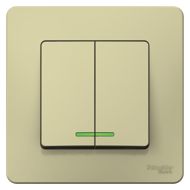 Выключатель двухклавишный Systeme Electric (ранее Schneider Electric) BLANCA (скрытой установки, цвет бежевый) с подсветкой предназначен для сетей до 250 В, на ток до 10 А. Благодаря светодиодной подсветке зеленого цвета изделие легко найти в темноте. С его помощью можно управлять двумя источниками света с одной точки. Увеличенная площадь контактной поверхности гарантирует надежность и качество соединения, исключая потери. Корпус изделия выполнен из ABS-пластика.