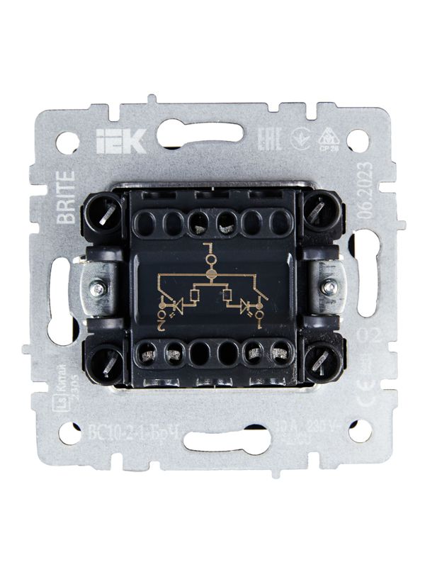 Выключатель 2-кл. СП BRITE ВС10-2-1-БрЧ 10А с инд. черн. IEK BR-V20-1-10-K02