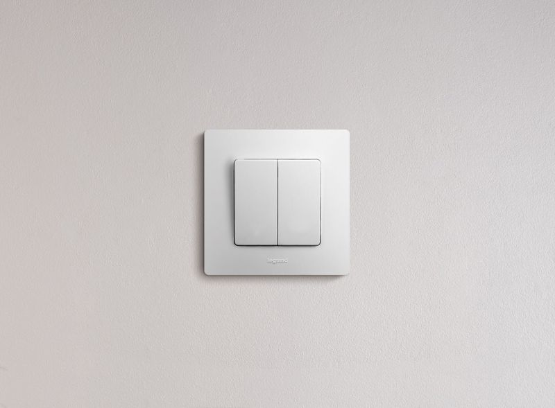 Выключатель двухклавишный ETIKA для скрытого монтажа, номинальный ток 10 А, предназначен для управления двумя электрическими цепями.