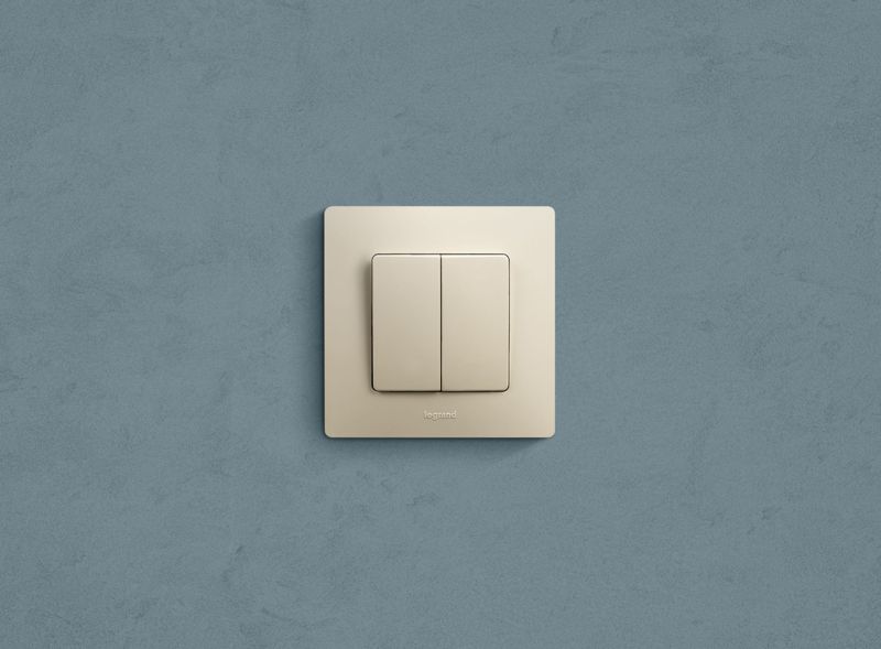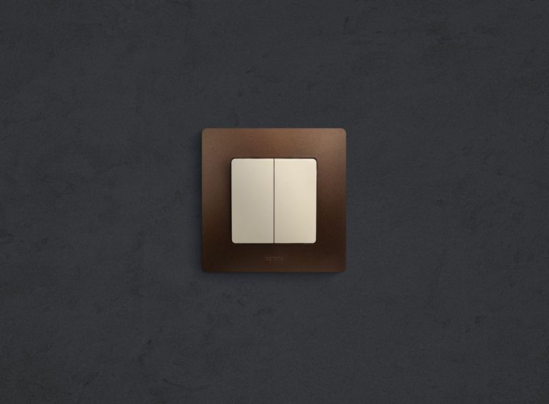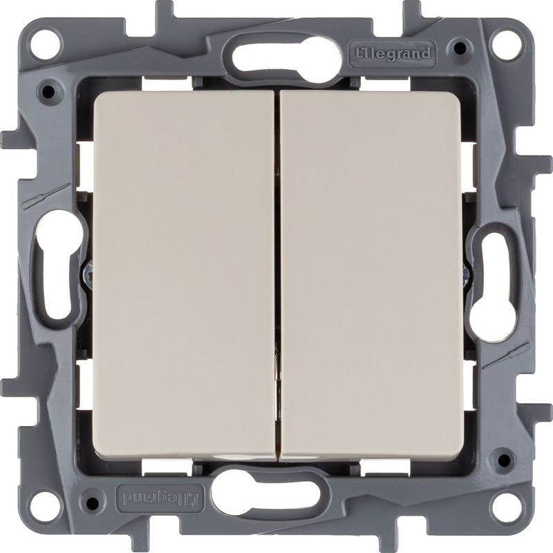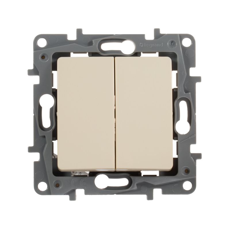 Выключатель двухклавишный ETIKA для скрытого монтажа, номинальный ток 10 А, предназначен для управления двумя электрическими цепями.
