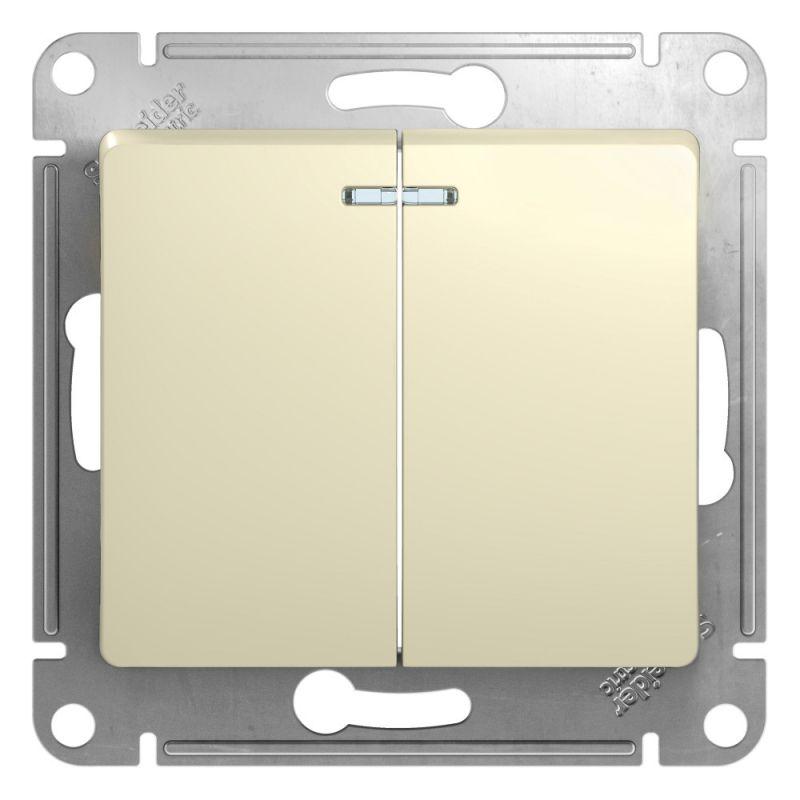 Выключатель 2-кл. СП Glossa 10А IP20 (сх. 5а) 10AX с подсветкой механизм беж. SE GSL000253