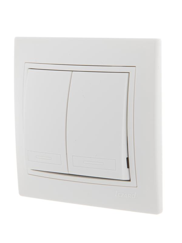 Выключатель 2-кл. СП Mira 10А IP20 с бел.вставкой бел. LEZARD 701-0202-101