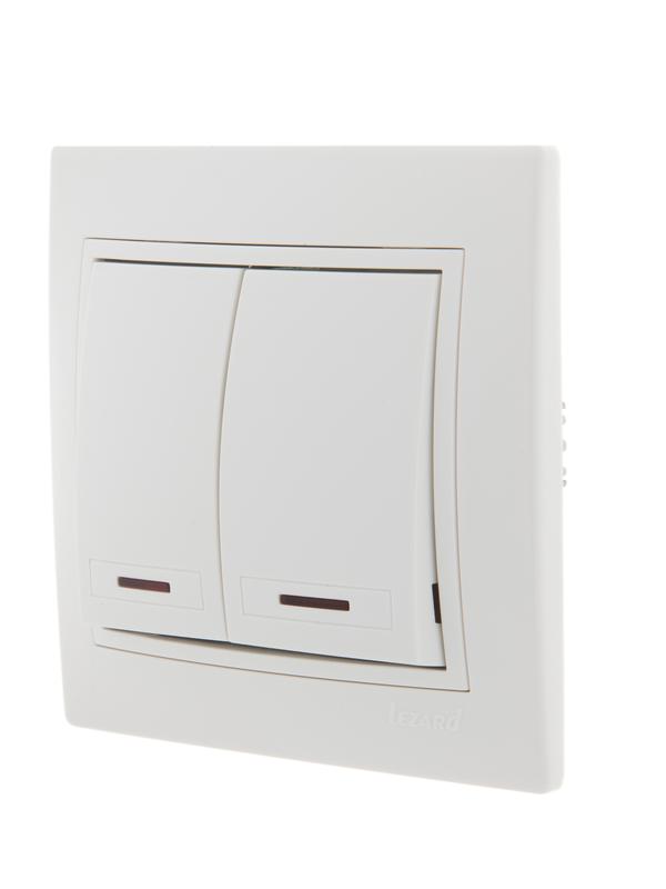 Выключатель 2-кл. СП Mira 10А IP20 с подсветкой с бел. вставкой бел. LEZARD 701-0202-112