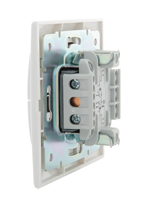 Принцип действия основан на коммутации контактов механическим способом (нажатием) , при этом положения коммутации фиксированы и позволяют находится в этом режиме достаточно долго, вплоть до следующего воздействия. Управляет двумя раздельными источниками освещения из одного места.