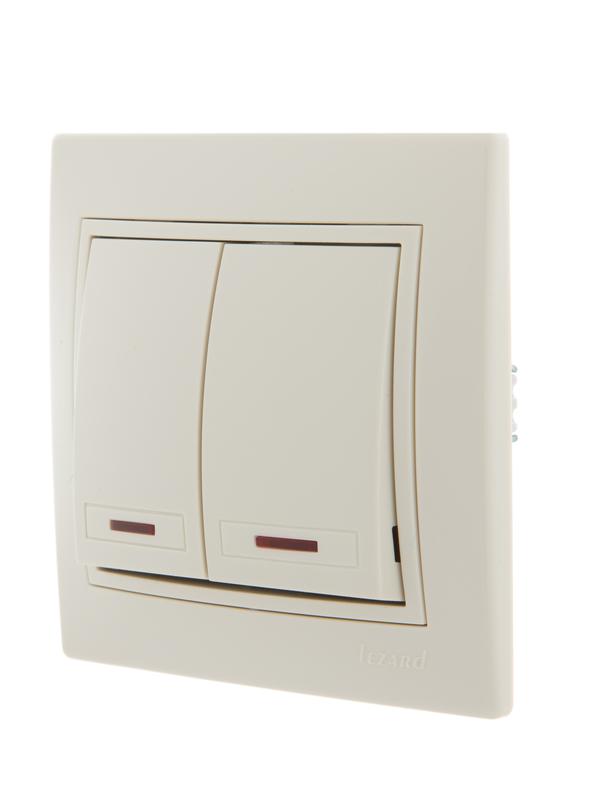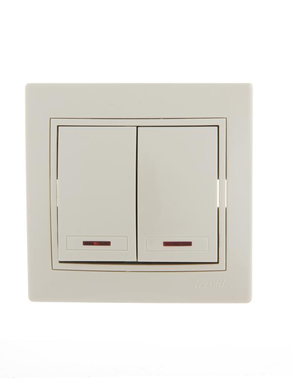 Выключатель 2-кл. СП Mira 10А IP20 с подсветкой со вставкой крем. LEZARD 701-0303-112 -