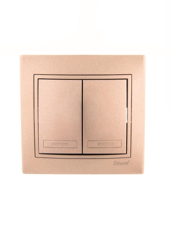 Выключатель 2-кл. СП Mira 10А IP20 со вставкой свет. корич. перламутр. LEZARD 701-3131-101 -