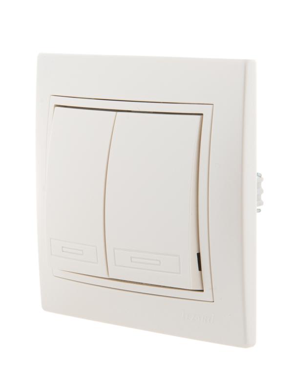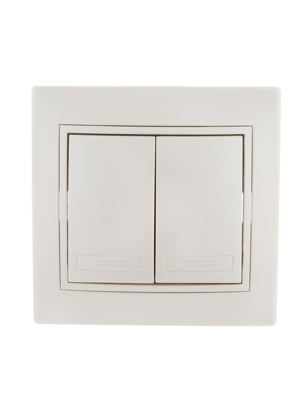 Выключатель 2-клавишный это двухпозиционный коммутационный аппарат с замыкающими (нормально-разомкнутыми) контактами, предназначенный для работы в сетях с напряжением до 1000 вольт, не предназначенный для отключения токов короткого замыкания, без специальных устройств дугогашения, местного управления, с ручным приводом.