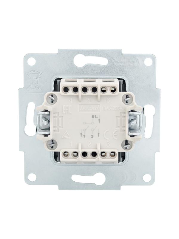 Переключатель проходной 2-кл. СП Mira 10А с сер. вставкой бел. LEZARD 701-0215-106 -