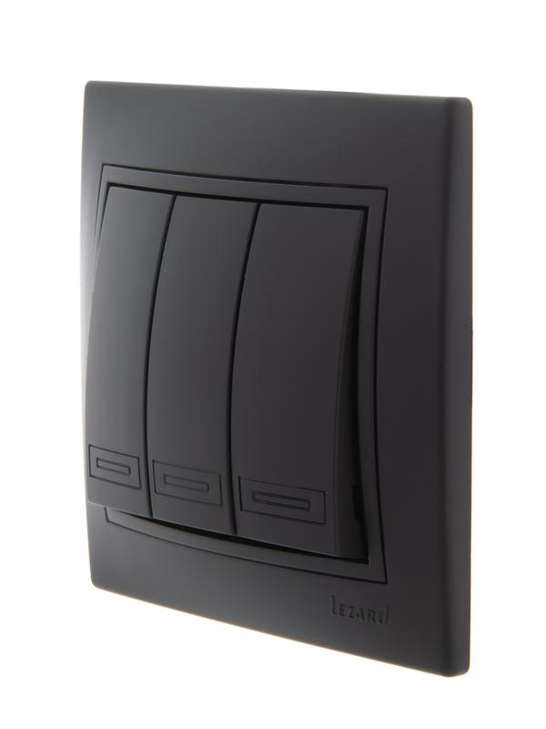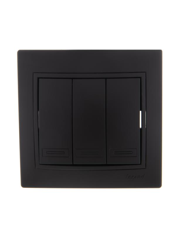 Выключатель 3-кл. 1п СП Mira 10А IP20 со вставкой черн. бархат LEZARD 701-4242-109 -