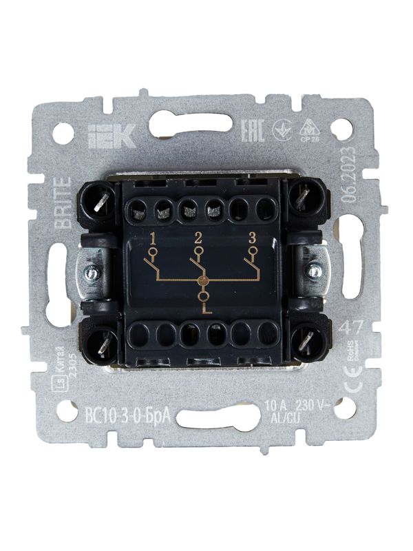 Выключатель 3-кл. СП BRITE ВС10-3-0-БрА 10А алюм. IEK BR-V30-0-10-K47 -