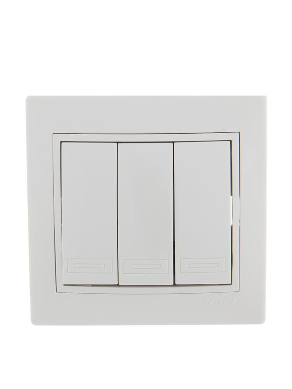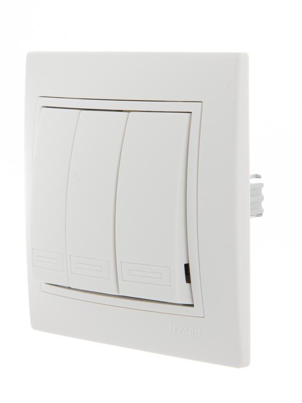 Выключатель 3-кл. СП Mira 10А IP20 с бел.вставкой бел. LEZARD 701-0202-109 -