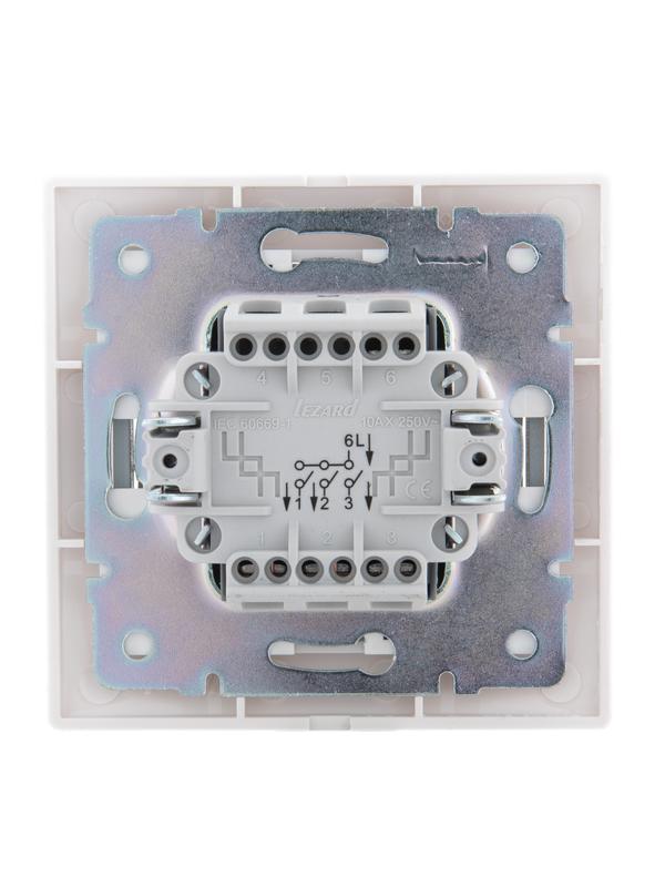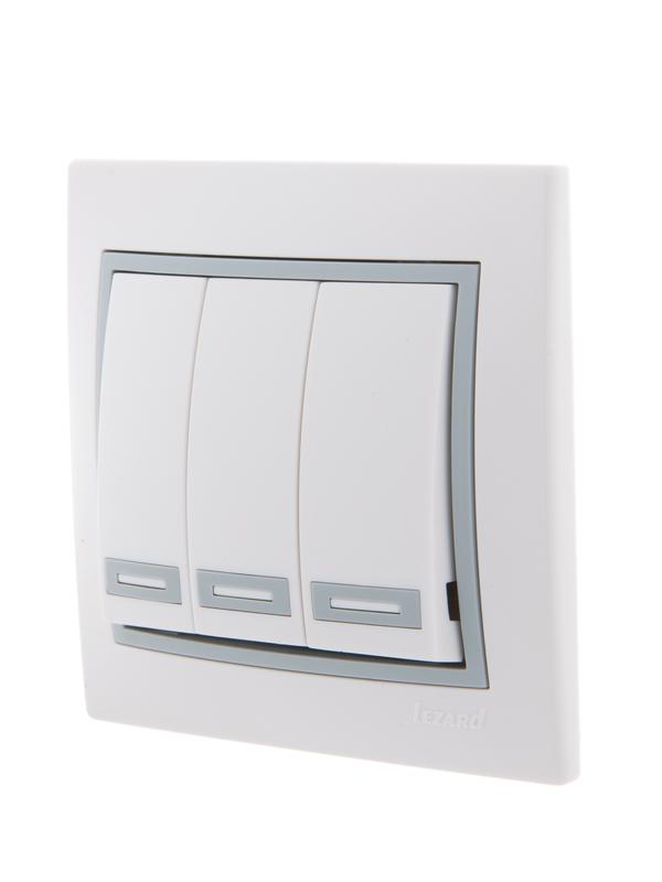 Выключатель 3-кл. СП Mira 10А IP20 с сер. вставкой бел. LEZARD 701-0215-109