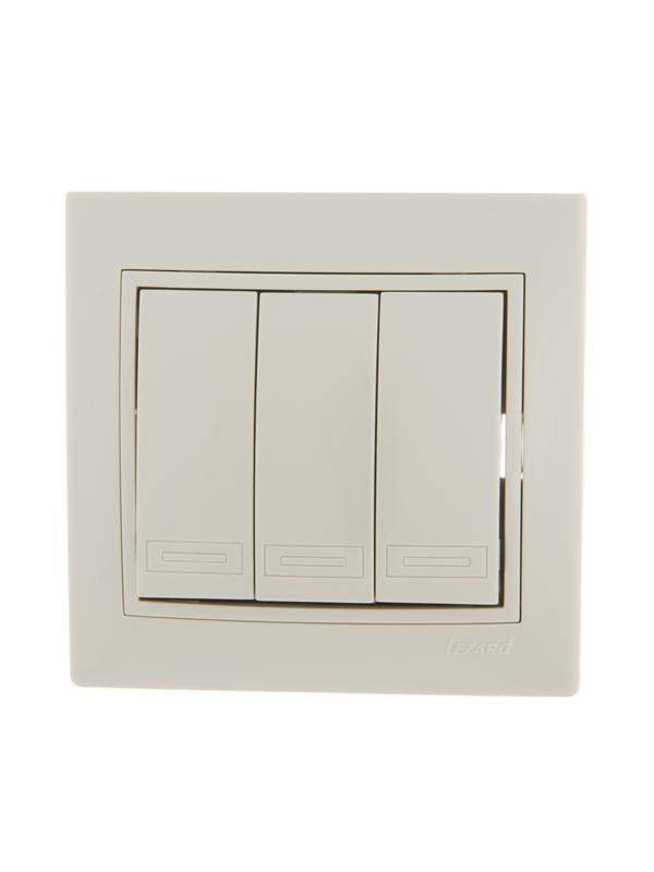 Выключатель 3-кл. СП Mira 10А IP20 со вставкой крем. LEZARD 701-0303-109 -