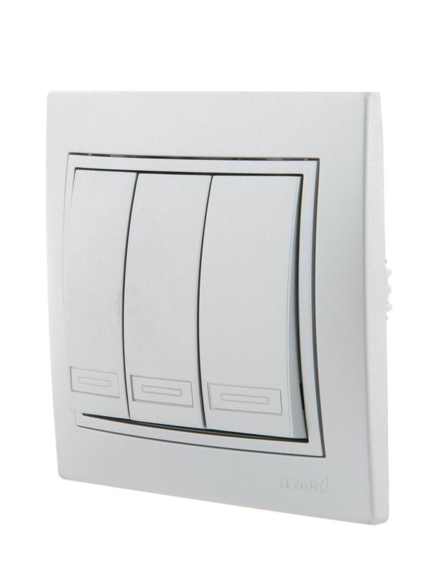 Выключатель 3-кл. СП Mira 10А IP20 со вставкой сер. метал. LEZARD 701-1010-109