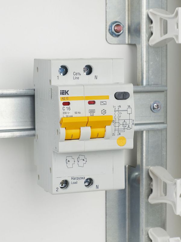 Выключатель авт. дифф. тока 2п C 16А 30мА тип AC 4.5кА АД-12 3.5мод. IEK MAD10-2-016-C-030