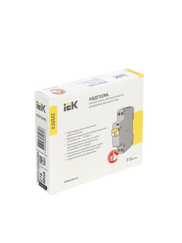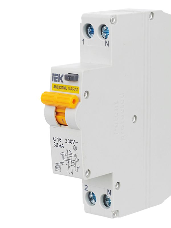 Выключатель авт. дифф. тока С 16А 30мА АВДТ32МL KARAT IEK MVD12-1-016-C-030
