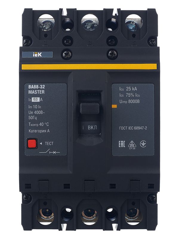 Выключатель автоматический 3п 63А 25кА ВА88-32 MASTER ИЭК SVA10-3-0063-02