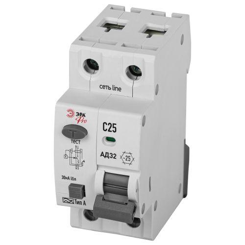 Выключатель автоматический дифференциального тока 1P+N C25 30мА тип А АВДТ 4.5кА PRO D32E2C25А30 АД32 электронное Эра Б0057385 -
