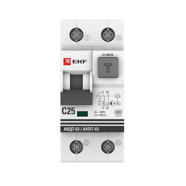 Выключатель автоматический дифференциального тока 25А 100мА тип AC 6кА АВДТ-63 электромех. PROxima EKF DA63-25-100em-AC