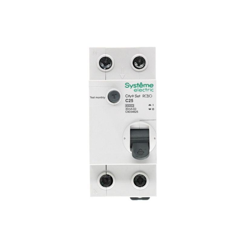 Автоматические выключатели дифференциального тока (АВДТ) серии City9 Set Systeme Electric,1P+N, номинальный ток 25 А, характеристика С, Icn = 4.5 кА, ток утечки 30 мА, тип АС. АВДТ применяется в электрических сетях напряжением 230В. Предназначен для защиты сети от перегрузок, людей от поражения электрическим током и токов короткого замыкания. Уставка по току утечки 30 мА обеспечивает гарантированную защиту людей при прямом прикосновении. Кнопка тест обеспечивает проверку работоспособности аппарата. Крепление на DIN-рейку шириной 35 мм. Безопасные клеммы (ранее Schneider Electric EZ9D34625).