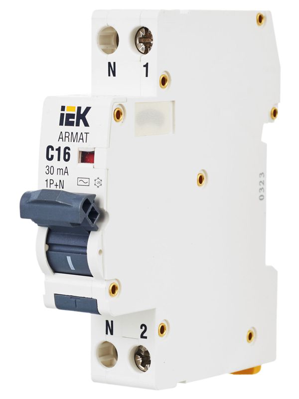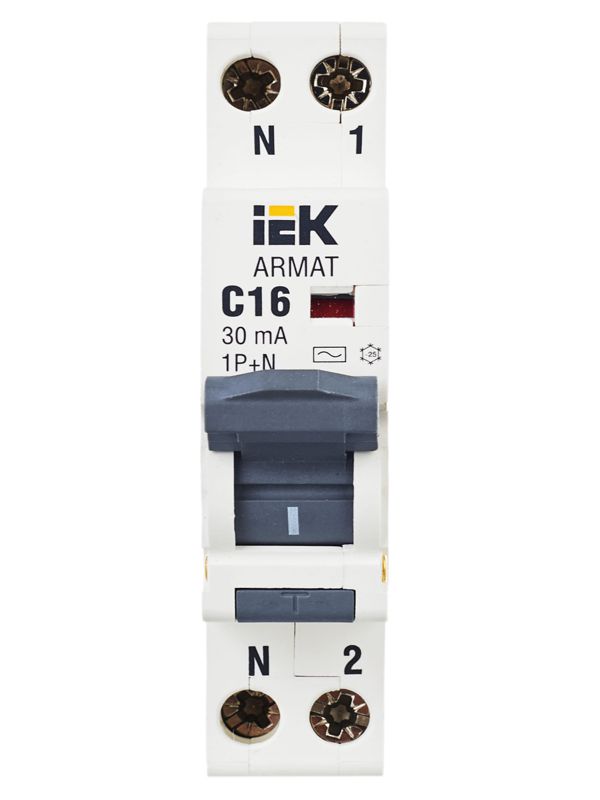Выключатель автоматический дифференциального тока 2п C 16А 30мА тип AC АВДТ B06S 18мм ARMAT IEK AR-B06S-1N-C16C030
