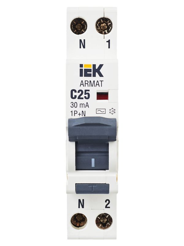 Выключатель автоматический дифференциального тока 2п C 25А 30мА тип AC АВДТ B06S 18мм ARMAT IEK AR-B06S-1N-C25C030