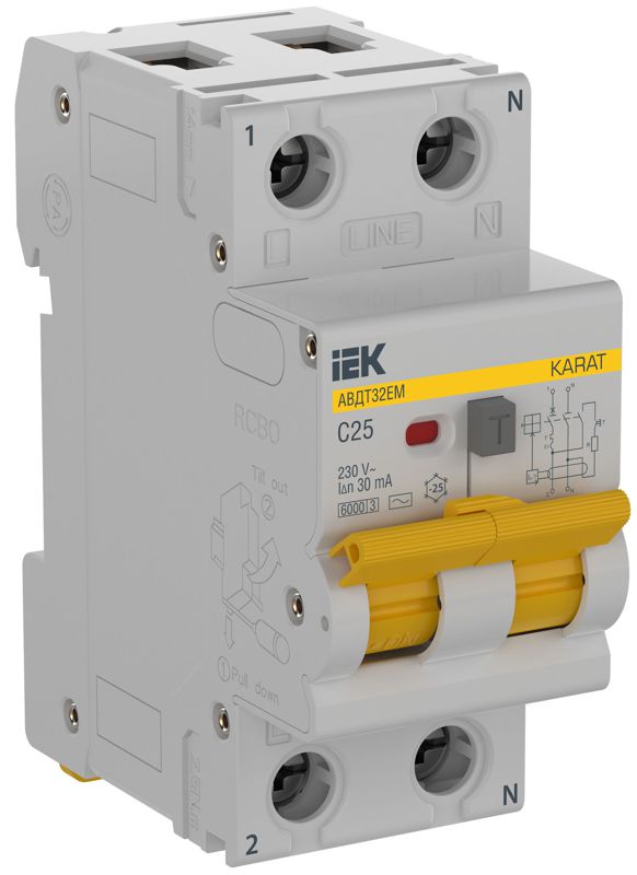 Выключатель автоматический дифференциального тока C 25А 30мА тип AC АВДТ32EM KARAT IEK KA-VD14-1-025-C-030-AC