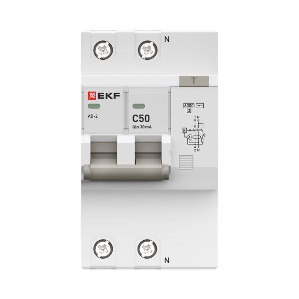 Выключатель автоматический дифференциального тока C 50А 30мА тип AC 6кА АД-2 (электрон.) защита 270В PROxima EKF DA2-6-50-30-pro
