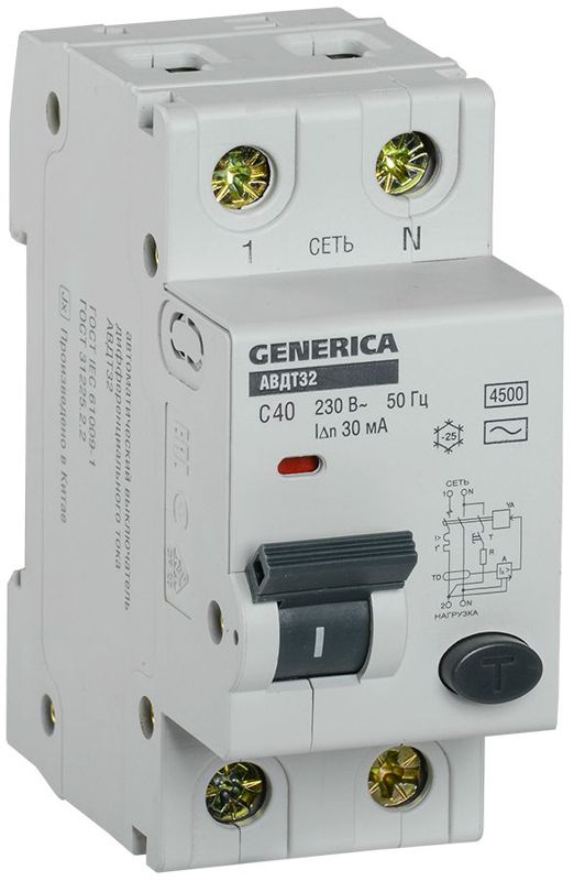 Выключатель автоматический дифференциального тока C40 30мА АВДТ 32 GENERICA MAD25-5-040-C-30