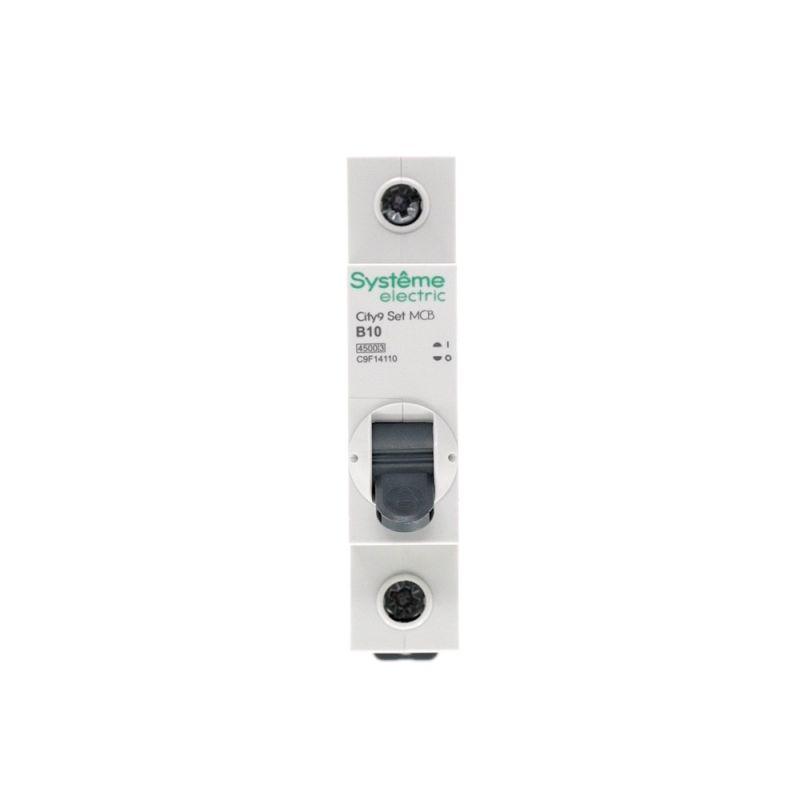 Автоматический выключатель серии City9 Set Systeme Electric, 1-полюсный, номинальный ток 10 А, характеристика B, Icn = 4.5 кА. Применяется в электрических сетях напряжением 230 В. Предназначен для защиты от перегрузок и токов короткого замыкания. Оснащен механизмом «мгновенной коммутации». Ударопрочный корпус из специального пластика с 6 металлическими заклепками. Безопасные клеммы исключают попадание кабелей в заклеммное пространство (ранее Schneider Electric EZ9F14110).