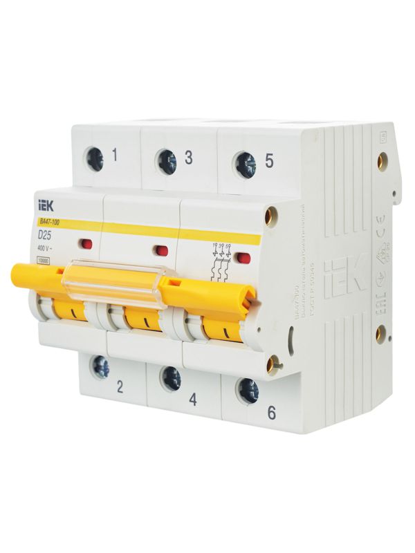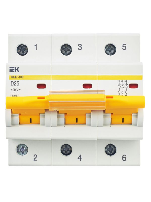 Выключатель автоматический модульный 3п D 25А 10кА ВА47-100 KARAT IEK MVA40-3-025-D