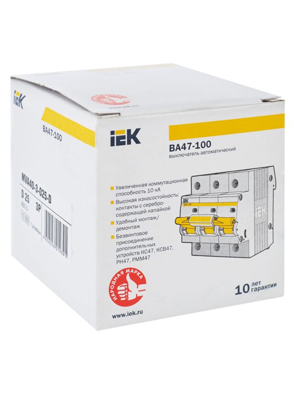 Выключатель автоматический модульный 3п D 25А 10кА ВА47-100 KARAT IEK MVA40-3-025-D -