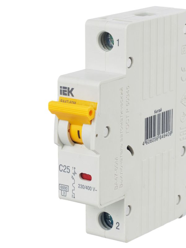Выключатель автоматический модульный 1п C 25А 6кА ВА47-60M IEK MVA31-1-025-C