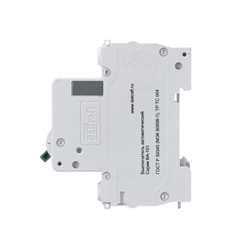 Автоматический выключатель серии ВА-101 Dekraft; 1P; номинальный ток 32 А; характеристика С; отключающая способность 4,5 кА. 5 монолитных заклепок повышают прочность корпуса аппарата. Сплошная лицевая панель обеспечивает безопасность эксплуатации аппарата. Боковые каналы охлаждения повышают стабильность работы при высоких температурах окружающей среды. Есть возможность установки дополнительных аксессуаров с левой стороны устройства. Аппарат на 100% совместим с корпусами Dekraft и Systeme Electric.