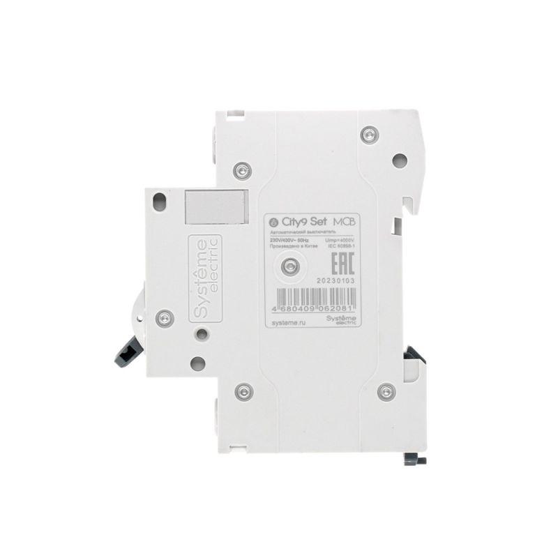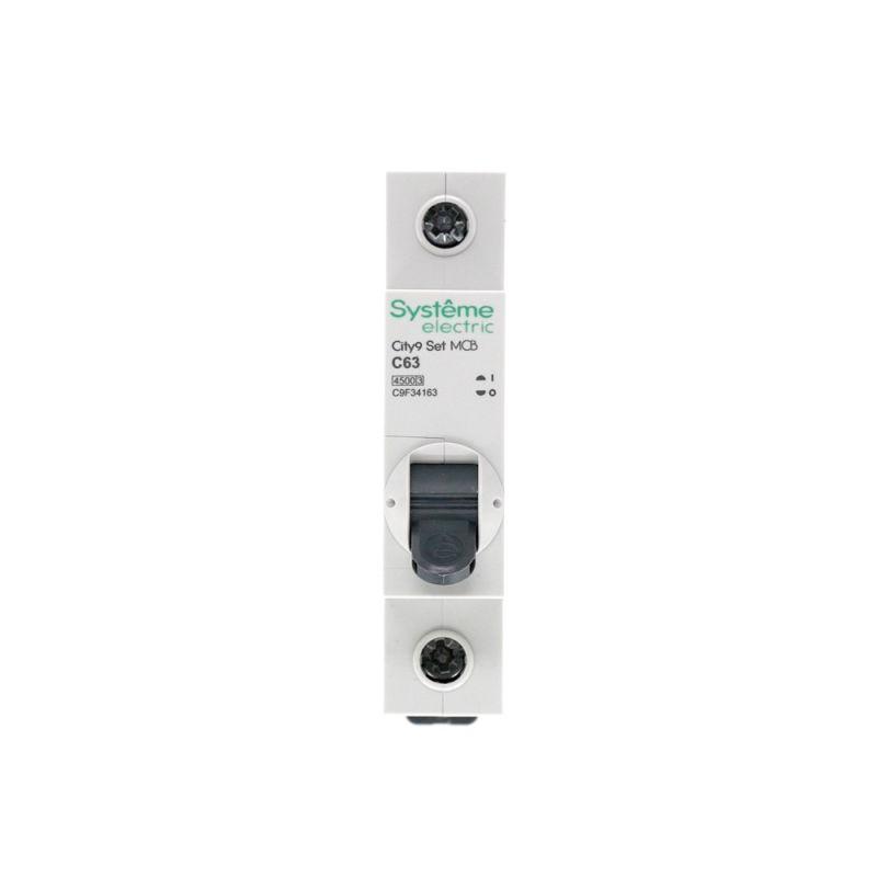 Автоматический выключатель серии City9 Set Systeme Electric, 1-полюсный, номинальный ток 63 А, характеристика С, Icn = 4.5 кА. Применяется в электрических сетях напряжением 230 В. Предназначен для защиты от перегрузок и токов короткого замыкания. Оснащен механизмом «мгновенной коммутации». Ударопрочный корпус из специального пластика с 6 металлическими заклепками. Безопасные клеммы исключают попадание кабелей в заклеммное пространство (ранее Schneider Electric EZ9F34163).