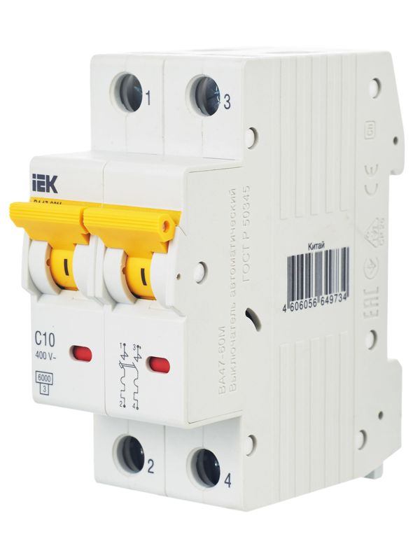 Выключатель автоматический модульный 2п C 10А 6кА ВА47-60M IEK MVA31-2-010-C