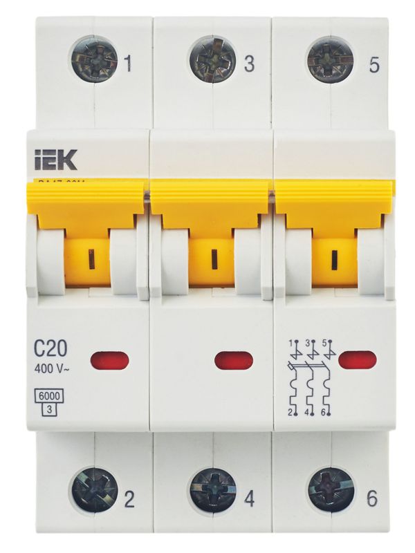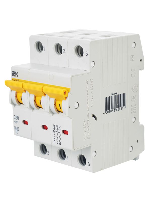 Выключатель автоматический модульный 3п C 20А 6кА ВА47-60M IEK MVA31-3-020-C